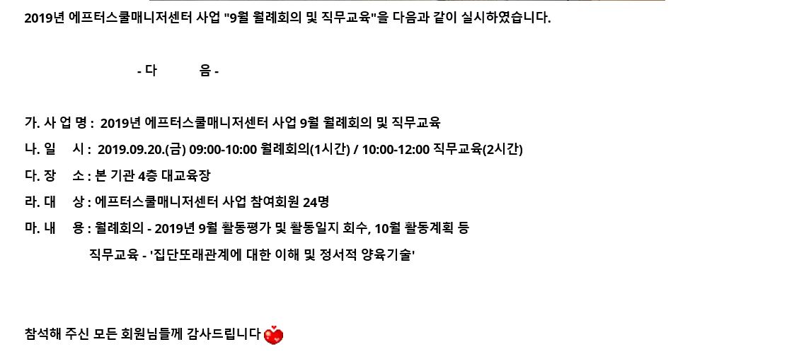 에프터스쿨매니저센터 | [에프터스쿨매니저센터] 9월 월례회의 및 직무교육 실시 완료 페이지 정보 작성자 작성일19-10-02 15:23 조회8,540회 댓글0건 관련링크 본문 이전글 다음글 목록