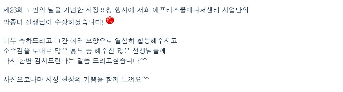 에프터스쿨매니저센터 | [에프터스쿨매니저센터] 제 23회 노인의날 맞이 시장표창 수상