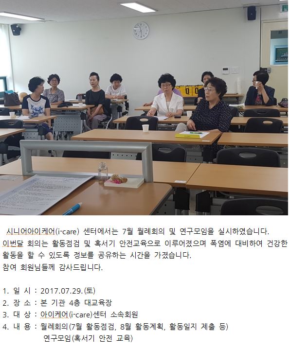 시니어 아이케어 | [시니어 아이케어] 7월 월례회의 및 연구모임 실시 페이지 정보 작성자 최고관리자 작성일17-08-08 08:44 조회11,904회 댓글0건 관련링크 본문 이전글 다음글 목록