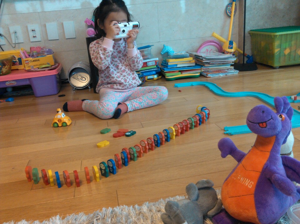 알록달록 도미노를 줄 세우고 재미있게 노는 모습이 정말 즐거워보여요~