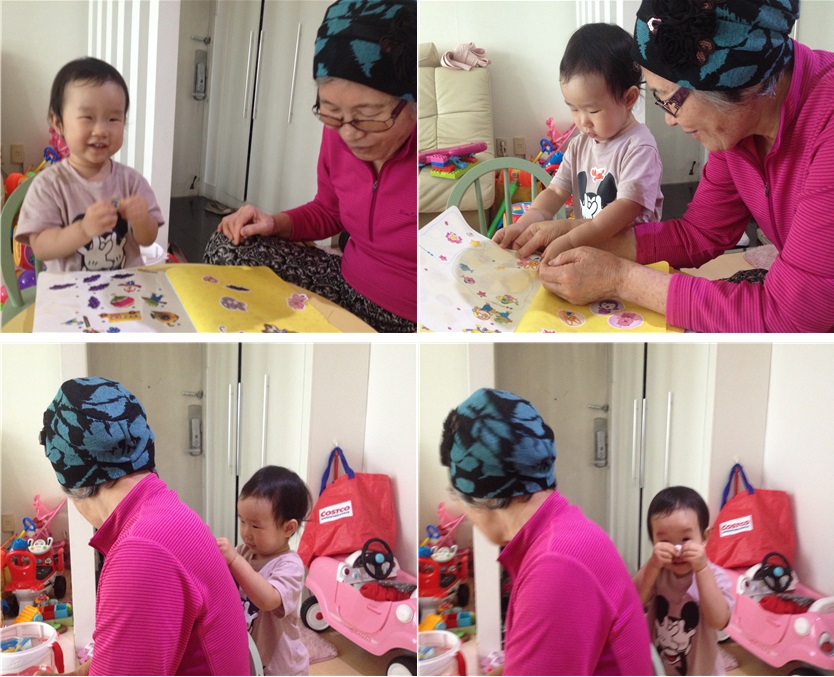 스티커 하나 하나를 떼어 붙이며 놀라운 집중력
