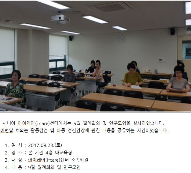 시니어 아이케어 | [시니어 아이케어] 9월 월례회의 실시 페이지 정보 작성자 최고관리자 작성일17-09-29 14:32 조회11,572회 댓글0건 관련링크 본문 이전글 다음글 목록