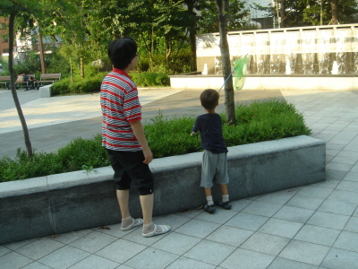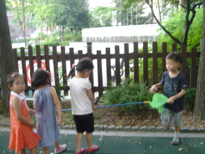 매미잡기와 기차놀이.
