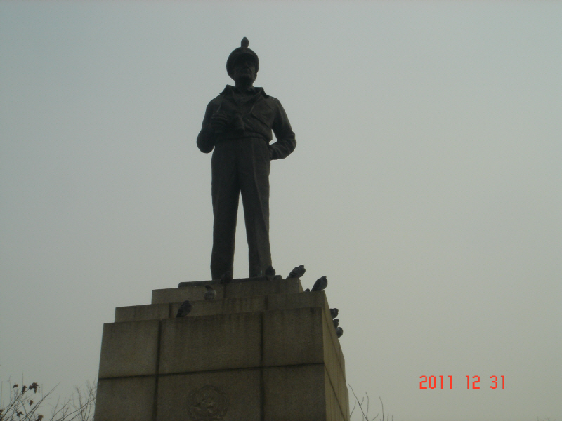 장군님 머리위에 비둘기 한마리가 있고, 아래에도 비둘기들이 있네요 .