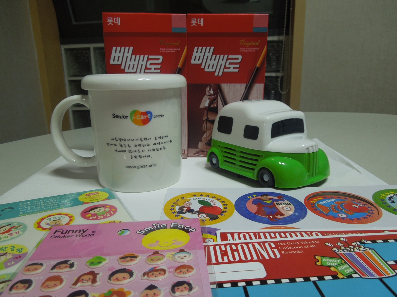 아이케어 머그컵 또는 자동차 모양의 탁상용 청소기를 답례품으로 전해드렸습니다. ^^