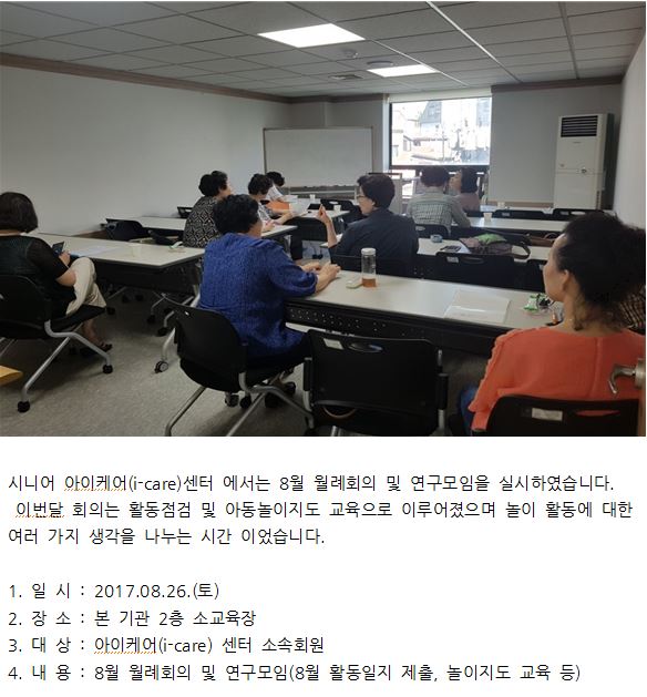 시니어 아이케어 | [시니어 아이케어] 8월 월례회의 실시 페이지 정보 작성자 최고관리자 작성일17-09-01 14:35 조회12,164회 댓글0건 관련링크 본문 이전글 다음글 목록