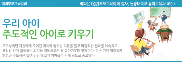 자녀들은 암기학습으로 압력을 받을 때, 성인을 위해 무엇인가를 수행하도록 했을 때 아이의 주도성은 짓이겨진다. 힘이 있는 부모나 타인을 즐겁게 하려는 아이의 욕구가 자신의 내적 동기와 갈등을 가지게 하기 때문이다. 아이가 자기 삶을 주도적으로 이끌어 가기 위해서 일상생활에서 기본생활을 스스로 할 수 있도록 습관을 형성시키고 유아가 원하는 활동을 스스로 선택하고 탐닉하며 즐기면서 몰입할 수 있는 놀이 환경을 제공하고 배려하는 것이다.