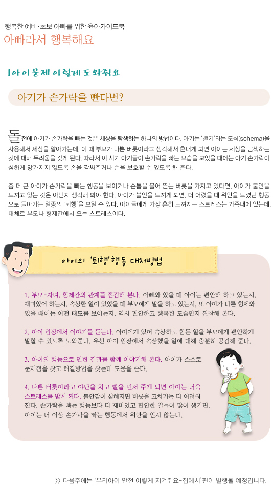 [건강] 아기가 손가락을 빤다면-아이의 '퇴행'행동 대처방법